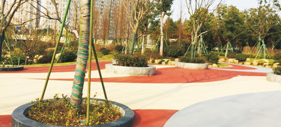 普通透水路面施工不專的業施工隊伍,沒有核心產品,配比方案隨意,路面時常會有結塊等情況產生。